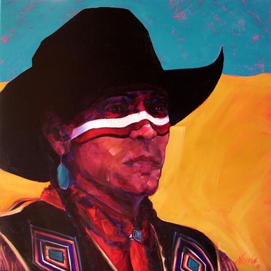 "Estudio de la Montura" was born in the Mimbres in southwest New Mexico. The house and studio was situated on a "saddle" of the Mimbres Mountains overlooking the Mimbres and Galinas River valleys. A lovely, magical place which will always be dear to me. I still do paintings of a good "jackrabbit friend" I made there. Moving outside of Santa Fe, NM where the light and energy fueled my creativeness. The "West" is the theme for my contemporary impressionistic paintings. Along with "critters," I have a passion to study and paint individuals that display strength and integrity. My focus is always on the "spirit" of the individual or animal. A thought. An emotion. Body language. A circumstance. What if? Just watch and listen...There is no difference between a person and an animal...they will tell you how they want to be portrayed.